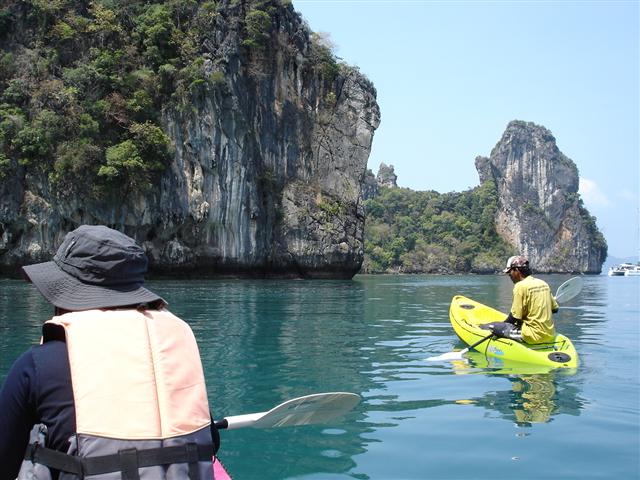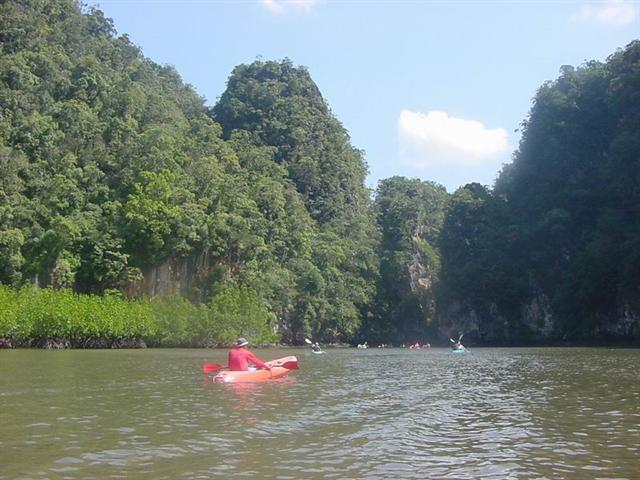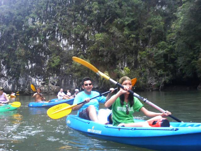 ダイナミックな鍾乳洞のトンネル内を漕いだり、上陸して古代人壁画洞窟散策など盛りだくさんツアー。勿論マングローブ樹林も漕いで頂けます。