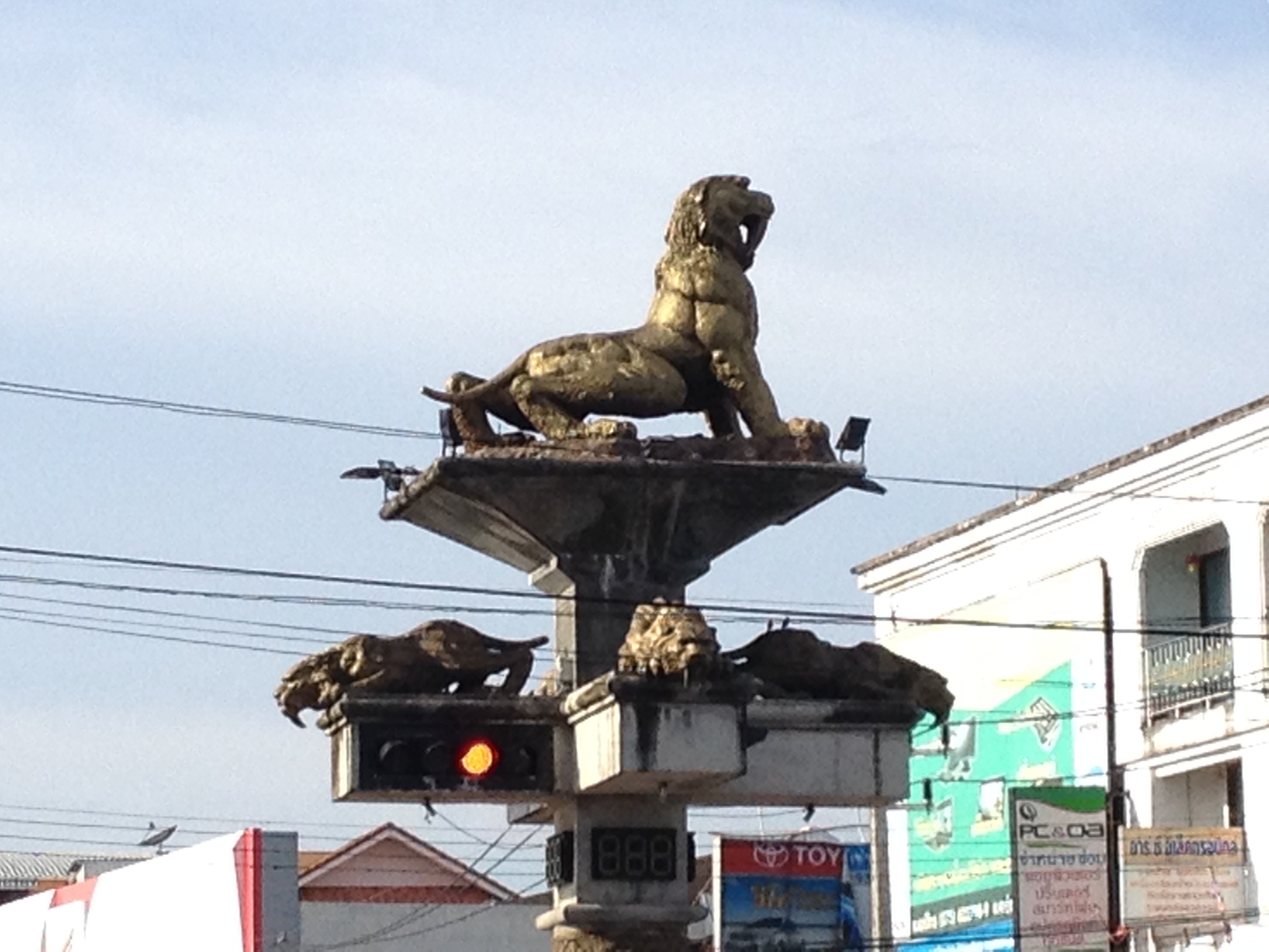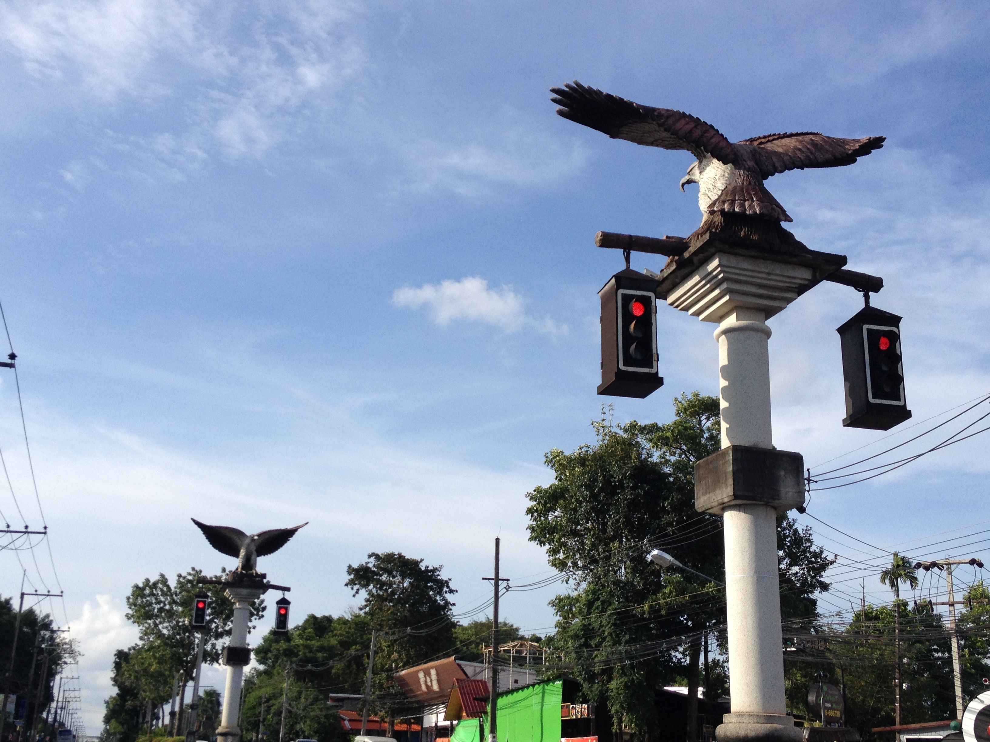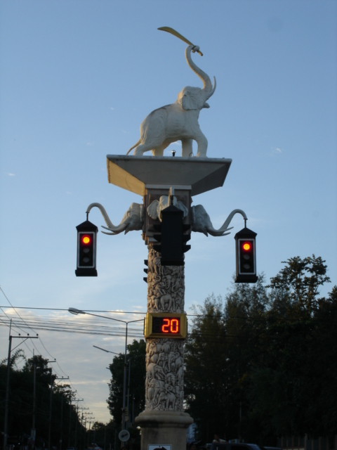 マハラットロードを北へ行くと、古代に行きていたというサーベルタイガーの信号やコンドルの信号、県庁舎の交差点にはクラビのシンボルである刀を持った象さん信号などもある。