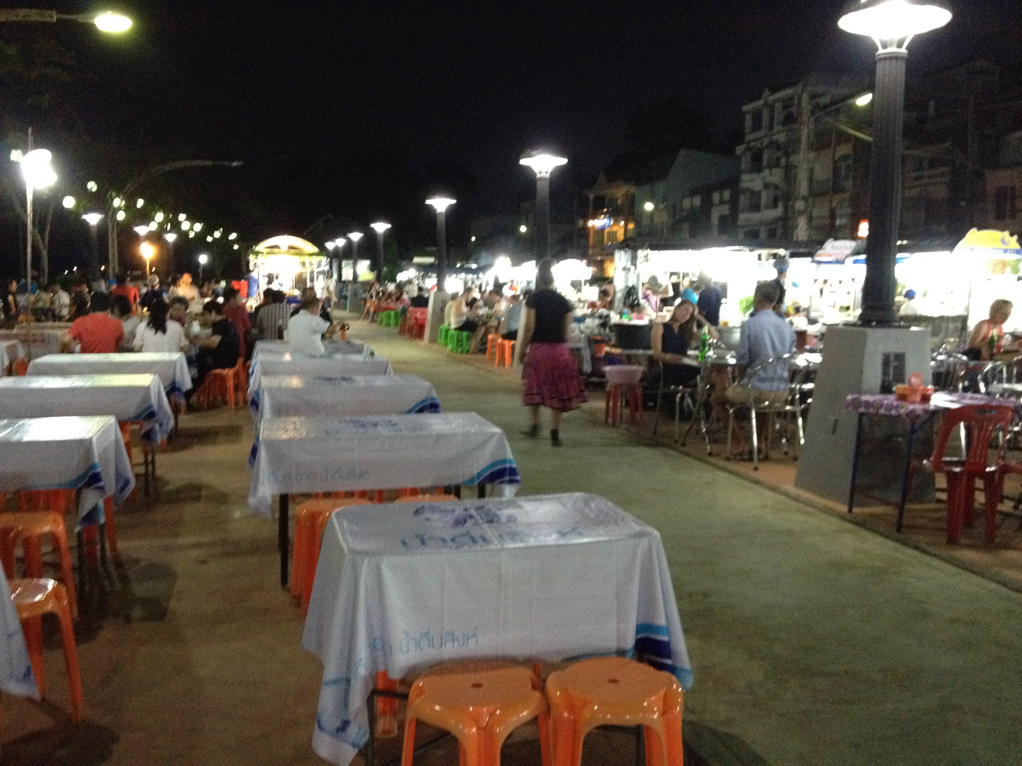 公園すぐ北側の道路を挟んだ川沿いには3件のモスリムレストランがあり、フライドチキン・もち米・ソムタム(パパイヤサラダ)などを川べりのゴザの上まで出前もしてくれる。
