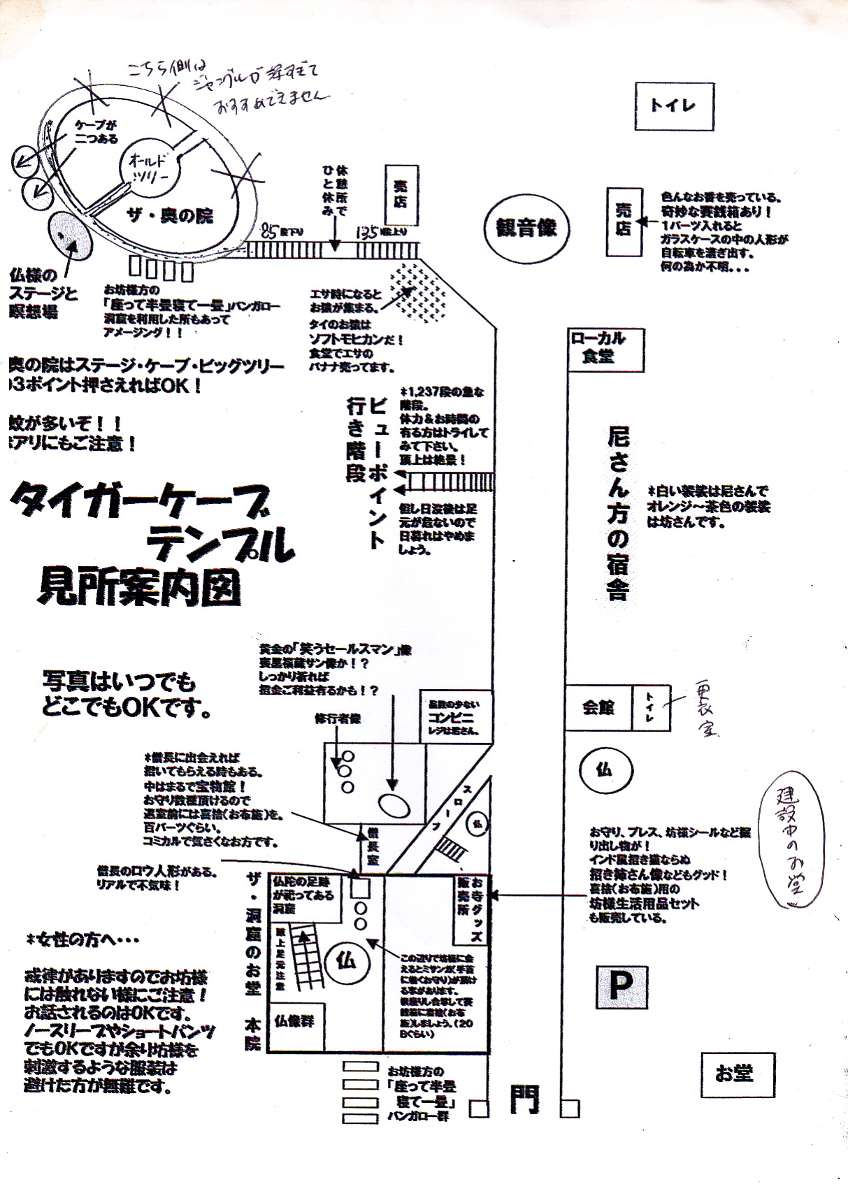 タイガーケーブテンプル見どころ案内図はこちら(店内にも置いてございます)